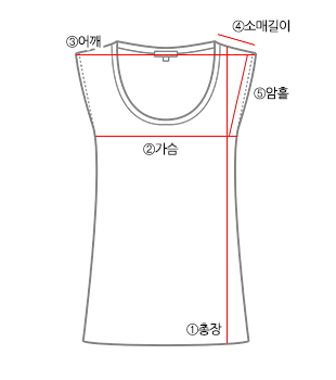 | 사이즈 | ①총장 | ②가슴 | ③어깨 | ④소매길이 | ⑤소매단면 |