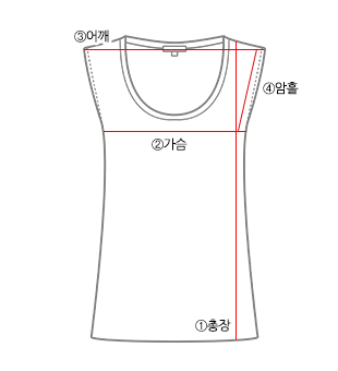 | 사이즈 | ①총장(앞) | ①총장(뒤) | ②가슴 | ③어깨 | ④암홀 |