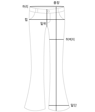 | 사이즈 | 허리 | 힙 | 허벅지 | 밑단 | 밑위 | 총길이 |