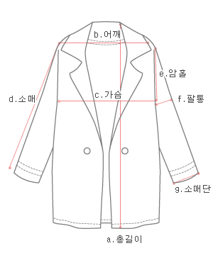 | 사이즈 | a.총길이 | b.어깨 | c.가슴 | d.소매 | e.암홀 | f.팔통 | g.소매단 |