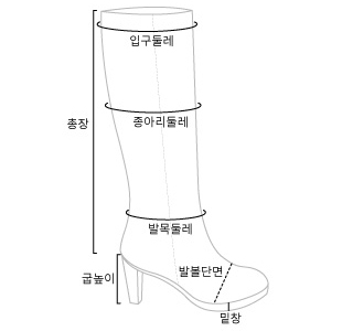 | 사이즈 Size 码数 | ①볼 Shoe width 宽度 | ②굽 Heel 鞋跟 | ③총길이 Total length 总长 | ④전체높이(굽포함) Total height 总高 | ⑤종아리단면 calf 小腿 |