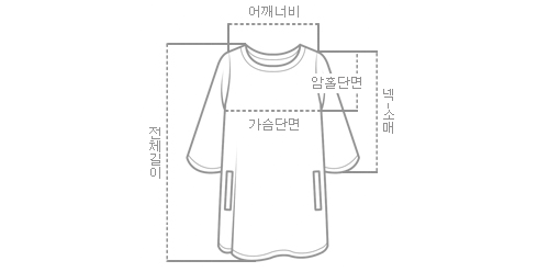| 사이즈 | 어깨넓이 | 가슴단면 | 암홀단면 | 넥-소매끝 | 총기장(앞-뒤) |